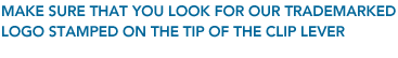It's the only way to know you're getting the best. The inferior copies have no identifying marks because they don't want you to know who made them. We stand by our products and proudly stamp our logo on our levers and emboss the plastic with our company name. It is your assurance that our clips will outlast any tie that hangs on it!